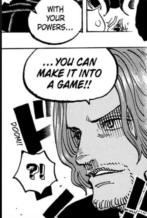 They want to bring them hostage at Mary Geoise to force Elbaph into submission, but would have to do so by boat since they don’t have the mark. Shamrock however suggests that given their powers, they should try turning this into a game. In this case the pronoun used here is “omaetachi” (お前達), which is a gender neutral second person plural pronoun, thus referring to the power of more than one person. Seemingly, Shamrock believes that by using their powers they can make this a twisted and sadistic game. He may not be taking this very seriously now, but this incident might serve as the spark of a much larger conflict to come!