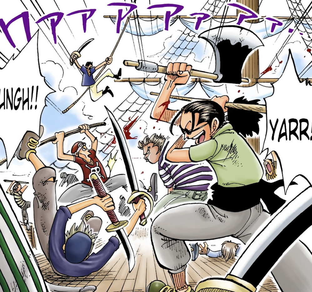 For starters, Scopper Gaban’s name has been in contention because while fans have written it as “Gaban”, in Japanese it’s actually “Gyaban”, with a “y”. This “gya” is likely where the ya in yaa-san comes from, which kinda gets lost if you translate it as “Gaban”. However, it’s also arguable that “Gyaban” has such a soft sound that writing it with just a G could also be a valid romanization, so it’s hard to say. It’s sort of similar to how a character like Kyros is actually pronounced as “kyu-ros”, but is romanized as “Kyros”, while still pronounced that way. His family name, Scopper, as keep in mind his actual name is Gaban, creates an obvious pattern in the names of the Pirate King’s crew, as Gol D. Roger obviously stands for “gold”, Silvers Rayleigh stands for “silver”, and Scopper Gaban stands for “copper”, the three podium metals in order.