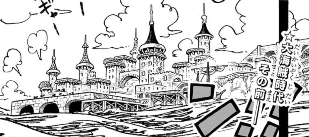 Meanwhile, as we see, Garp looks a lot like Dragon and Luffy, carrying his iconic white suit, and was already a Marine Headquarters Vice-Admiral at this time. He unleashes his iconic Genkotsu Meteor (拳骨隕石), which literally means as seen in its kanji reading knuckle meteorites, where he throws cannonballs with his bare hands for massive damage, which we had seen used against the Thousand Sunny when Luffy was trying to leave Water Seven. Roger however retaliates with a brand new move, called Aramitama (荒御魂)!! This word is a religious term from Japanese shinto belief, being one of the aspects which forms the spirit of a soul or deity. These aspects are found in the form of the “aramitama” (荒御魂), which means the “rampaging spirit” and the “nigimitama” (和御魂), which means the “gentle spirit”, with one being more violent and the other being more peaceful, so it makes sense that a powerful attack would be named after the violent one. What is interesting is that this is similar to his other named attack Kamusari (神避, often translated as Divine Departure), which is a term from the old Japanese kojiki texts that serves as a religious term that combines the kanji for “god” and “to evade”, or “to repel”, and was originally used to poetically refer to the death or departure of a god. So we see a deep connection between Roger’s attacks and shintoism, but particularly with the more violent side and the concept of slaying gods.