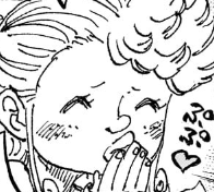 This chapter introduces us to a young Gloriosa, the current Empress and Captain of the Kuja Pirates, who would later appear go by the name of “Elder Nyon” and assist Luffy during the Amazon Lily arc (the name “nyon” likely referring to just her constantly saying “nyon” sounding like an old grandma, but also being a pun on “nyo”, woman, the name of their island). Her outfit is quite similar to Hancock’s, an outfit intended for an empress, which even carries the symbol of “kuja”, as that word simply means “nine snakes” in Japanese, so the logo carries nine snakes in it, in a shape reminiscent of a sun, perhaps a hint to the culture’s old ties in the past.