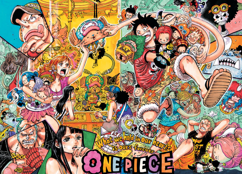 As for the color spread instead, we see the Straw Hats gambling their savings away on the infamous claw machines, a construct that while popular all around the world is specifically iconic to Japanese culture, being massively widespread around Japan, as even yours truly has lost many a coins in trying to attain some sweet One Piece prizes. The fun part here is that the straw hats are trying to grab many plushies of their favorite characters! Centerpiece are once again Luffy, Nami, and Chopper, with the former two trying to wrestle for possession of a Chopper plushie.