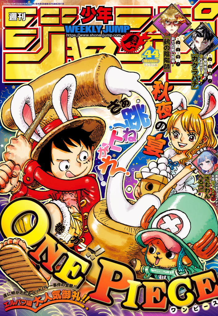 On this week’s Shonen Jump Cover, we have rabbit Luffy and Nami along with Chopper pounding mochi together under the moonlit night sky. Oda loves to draw the Luffy-Nami-Chopper trio for covers, likely due to being a combination of the main male and female leads and the series mascot, so that isn’t surprising, but you might be curious as to what the point of this cover is about. Luffy and the others are celebraying what is known as Tsukimi (月見), a Japanese celebration that translates into “moon-viewing”. This celebration takes place in September, or in other words right now, and involves admiring the beautiful full Moon during the night while sharing delicious mochi or tsukimi dango with others, the latter named specifically after the festivity and made to be in the shape of a white round ball, just like the Moon.