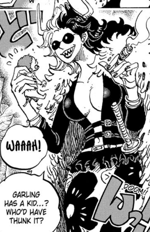 Howling Gab is an officer of the Red Hair Pirates, who in Film RED interestingly showed the ability of being able to shoot a laser beam through his mouth, though he was stopped by Beckman before he could really do anything. This ability was also highlighted in the booklet by Oda, so clearly he’s cooking something here with it, but we’ve never been told more about it. It looks quite similar to what Maffey is using here, but it’s also possible that this power is simply unique to whatever mythical power she has, as like the other God Knights it’s totally possible she might be able to transform into some other kind of demonic creature.