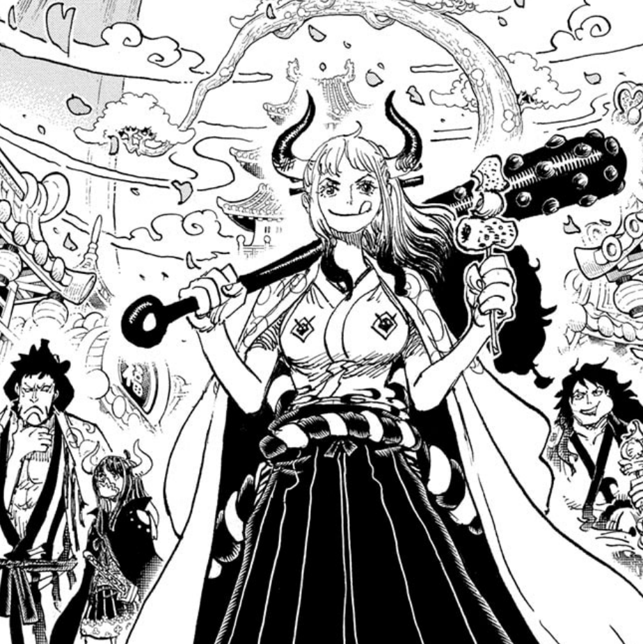 On the cover, Yamato’s cover story at last comes to an end after 44 chapters, having begun all the way during the late stages of Egghead. While some might assume this was the longest cover story ever, it is, in fact, not. The From the Decks of the World cover story was 48 chapters long, the Stories of the Self-Proclaimed Straw Hat Grand Fleet was 46 chapters long, and even for individual characters, Caribou’s Kehihihihi in the New World was 46 chapters long, so Child of Oni Yamato’s Golden Harvest Surrogate Pilgrimage only comes in as the 4th longest cover story in the series.