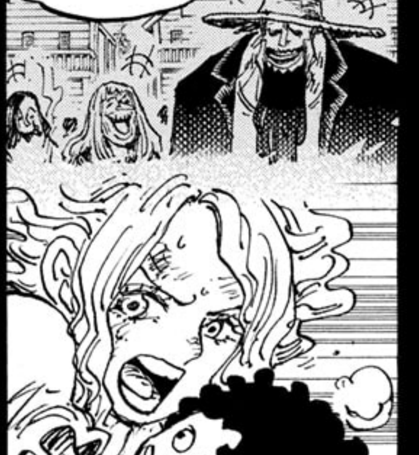 Eitherway, Eris is confused by seeing the members of the clan she joined turning like that, referring to the large guy with the straw hat some celestial dragons thought could be a buccaneer as “oyaji”, or “pops”, and the other large lady as “baba”, or “granny”. It’s possible thus that these could be Xebec’s own parents, which is interesting as the father seems to carry a straw hat as we’ve pointed out before, though definitely a bit different than Roger’s here. Interestingly, Xebec tells Eris that “If anyone bearing the name Davy were to be caught, they’d be made to suffer pain so unbearable that it would make even hell feel tame by comparison”. The way this is worded in Japanese makes it simply sound like those of the Davy clan would be tortured by the Government, but I wonder if perhaps he means this more literally that those of the Davy clan have more sensitivity to pain. Particularly as Teach mentioned that he absorbs pain more than normal people, which many attributed to his fruit, but while he did say “my body absorbs all pain and that pain is amplified in the process” in the context of his fruit, it’s still possible it could be a trait of his unique body. I am perhaps looking too much into this and Xebec only meant it as them being persecuted by the Government, but it’s worth at least keeping it in mind. It’s also worth noting that Eris claims “I understand really well what the fate of this clan is”, which adds more to the mystery.