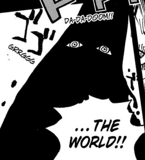 As after all, a massive black lightning bolt hits the island. The cracking of the thunder, seen through the sound effect “biri biri” (ビリビリ) extends to the entire island, where Roger, Garp, and Xebec all notice it.