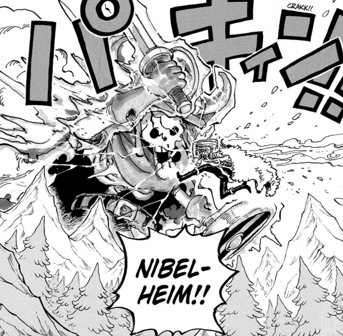 The odd thing is that here it isn’t spelled as “Niflheim” (ニヴルヘイム), but instead as “Nibelheim” (ニブルヘイム). Written with this katakana, instead of referring to the primordial world from norse culture, it’s instead referring to the iconic town of Final Fantasy VII, an iconic piece of Japanese modern pop culture. In that game several locations are named after norse mythology, such as the city of Midgar, but with slight variations to their names, such as Niflheim becoming Nibelheim. The reason for this spelling being different, in my guess, would be due to Oda making a common spelling mistake. After all, writing Niflheim correctly in katakana isn’t easy, and Oda may have more easily associated the name from the famous videogame being the correct spelling, particularly as Oda has claimed in the past to be a fan of Final Fantasy, infamously almost missing a chapter deadline during Arlong Park due to wishing to binge all of Final Fantasy VIII when it first released. So it most likely is meant to be “Niflheim”, but Oda instead here seemingly made a mistake and named it “Nibelheim” after the famous videogame.