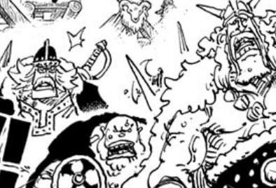 On a random note, among the giants of the West Village in a small panel you can spot Raideen, who was the same giant that had been training Hajrudin when he was little in Big Mom’s flashback, and who even earlier appeared in Dorry and Brogy’s flashback all the way back in Chapter 129 during Little Garden.