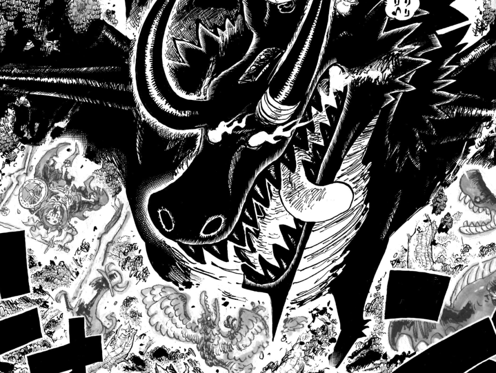 Going back to the history of dragons in One Piece, it makes me wonder if perhaps the previous user of this fruit could be the one that Ryuma had slain above the skies of Wano’s capital instead of being the user of Kaidou’s fruit, and what its importance may have been back during the Void Century, particularly to result in being confined within Aurust Castle to ensure that the fruit wouldn’t be used unless it was by someone worthy. This also makes me wonder on how this ties with the adoration Celestial Dragons have for dragons, not only naming themselves after it, but even asking Vegapunk to create artificial dragons and artificial fruits all through copying and studying Kaidou’s lineage factor, not to mention Kaidou’s fruit was a Celestial Dragon possession to begin with.