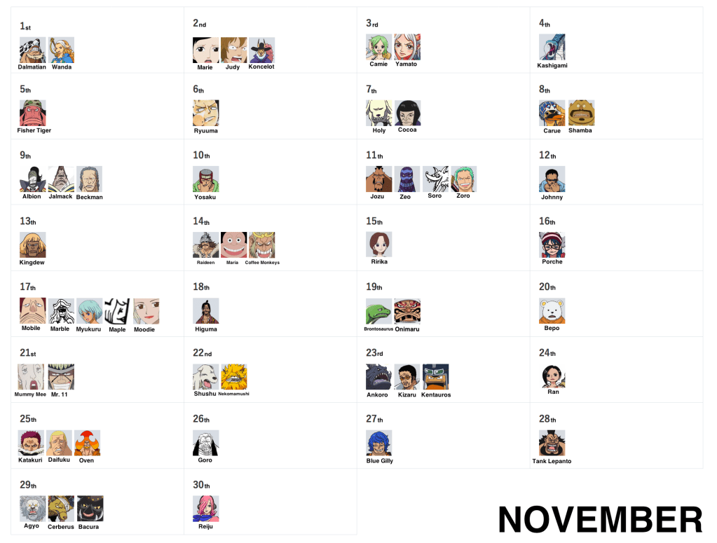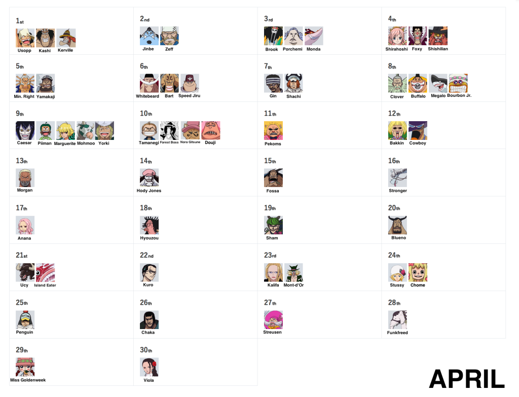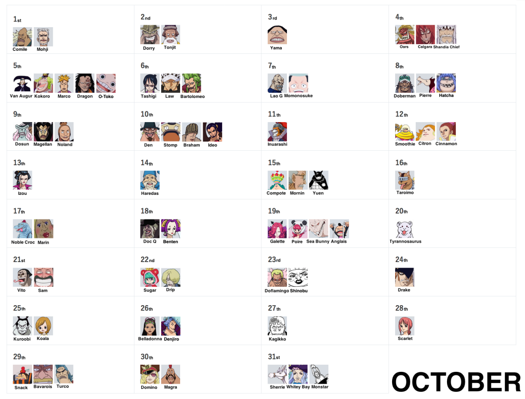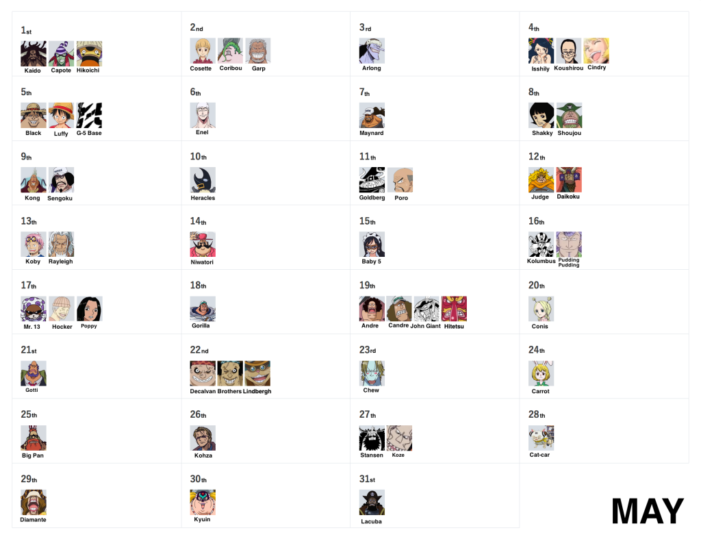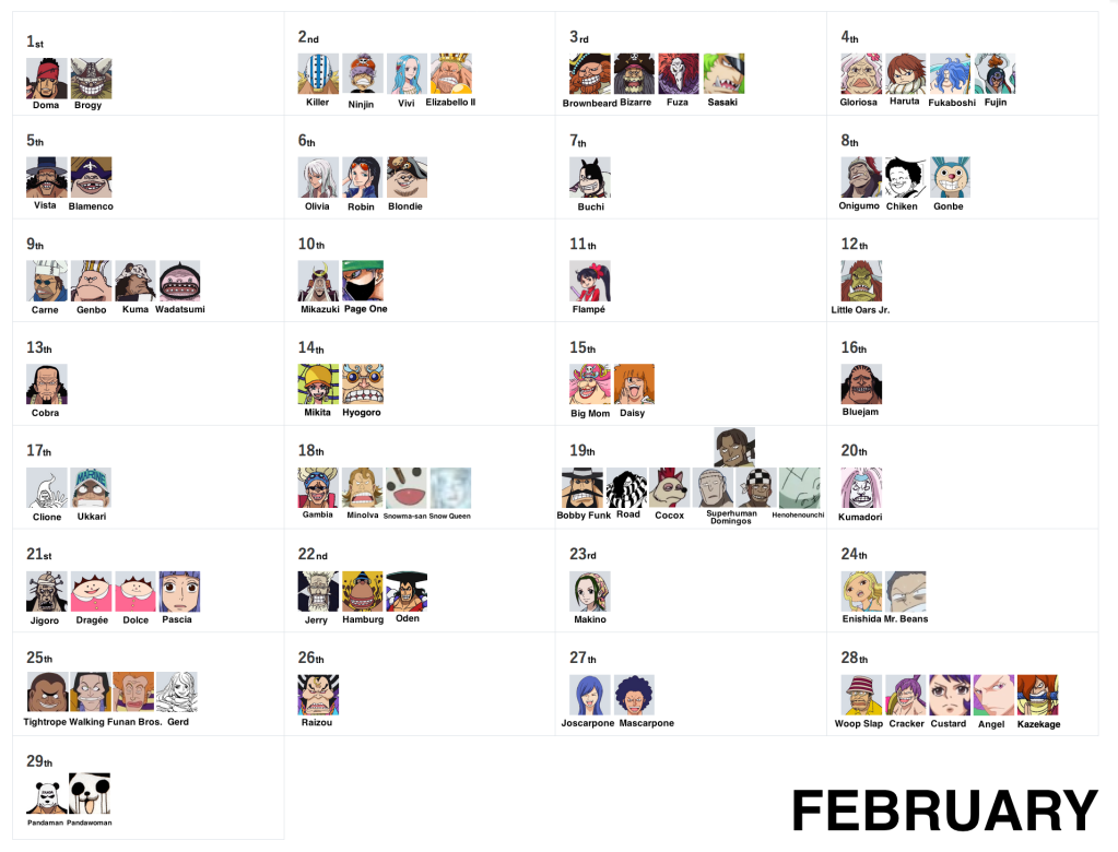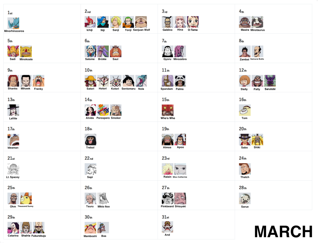 March 15th, September 27th and December 23rd remain as the very last days without birthdays! But don’t worry, as they’ll eventually be filled via more vivre cards and more SBS requests, so stay tuned!