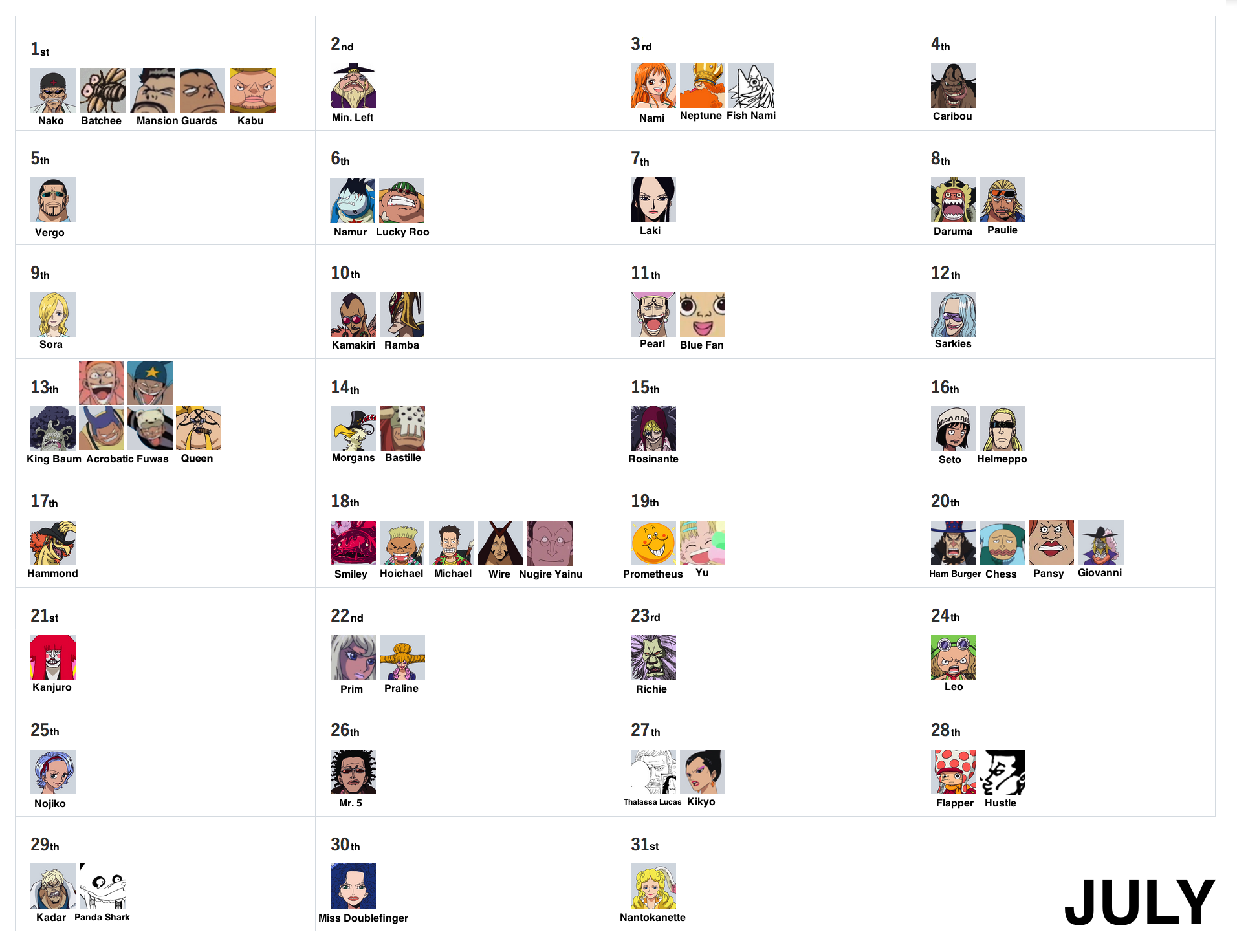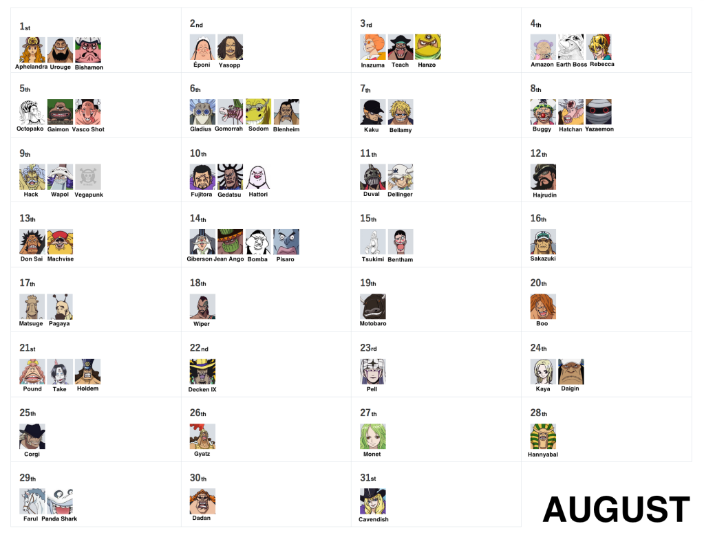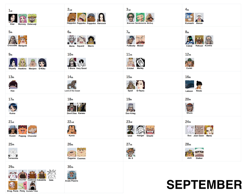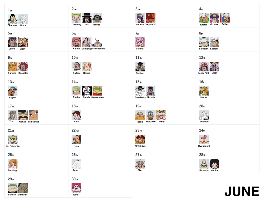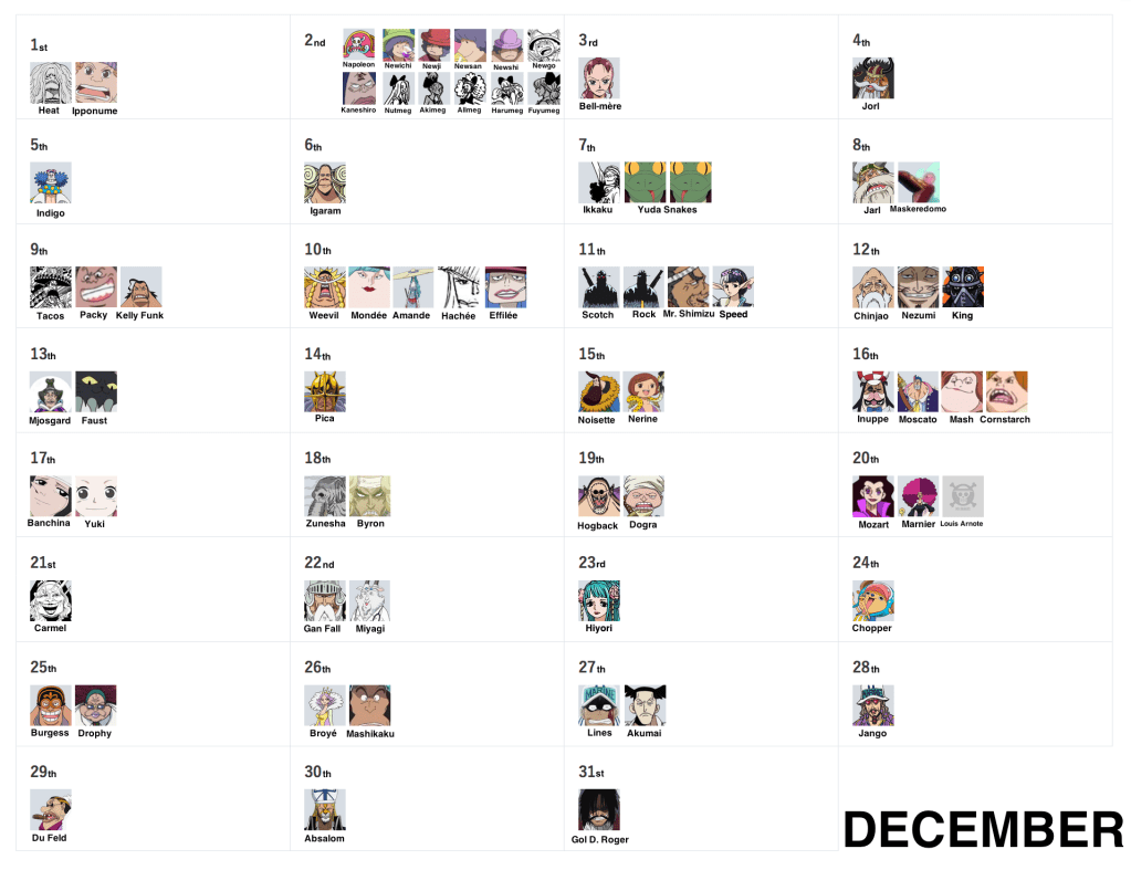 March 15th, September 27th and December 23rd remain as the very last days without birthdays! But don’t worry, as they’ll eventually be filled via more vivre cards and more SBS requests, so stay tuned!
