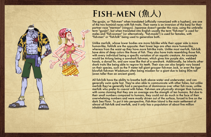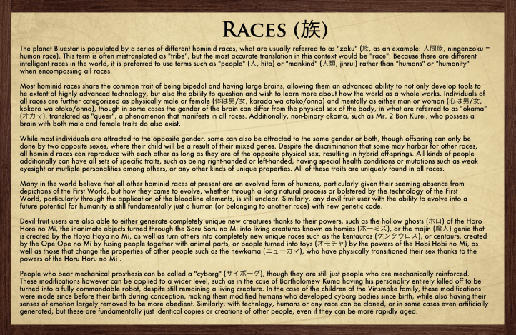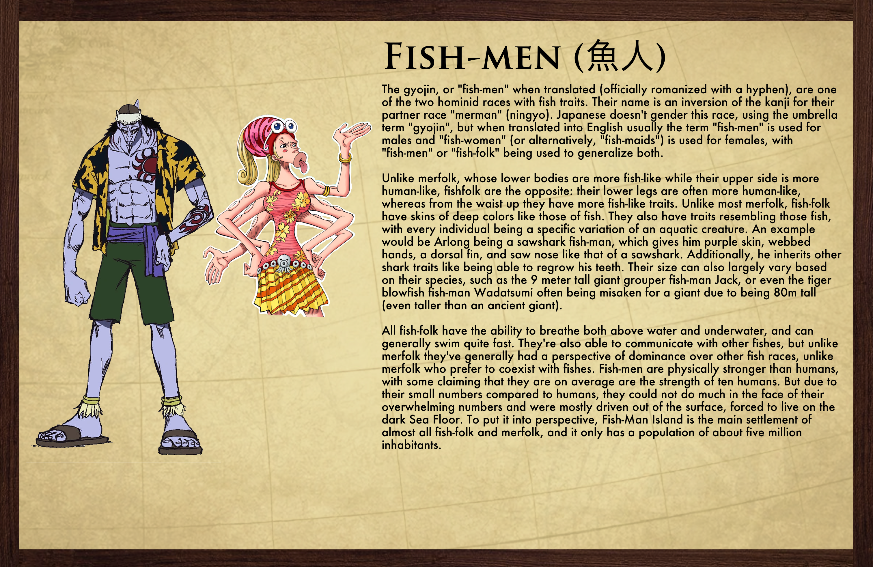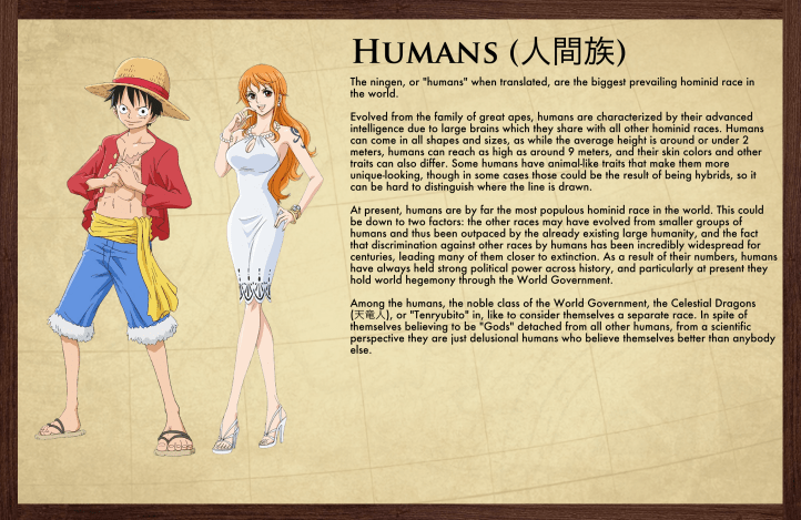 The One Piece Race Encyclopedia is a comprehensive encyclopedia on all the hominid races in One Piece’s world of Bluestar!